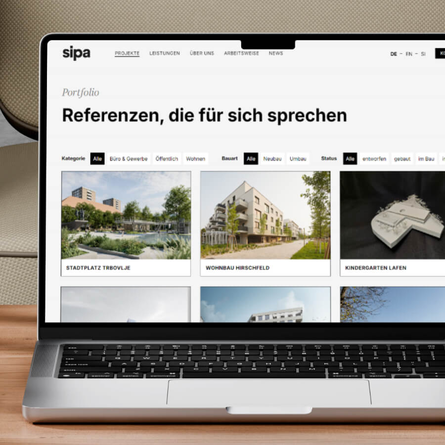 We were given the opportunity to redesign the digital presence of sipa Architektur, a young architecture studio known for clear concepts and passionate planning. The goal was to create a web design that is both clean and timeless, making the studio’s philosophy, “simple ideas, passionate architects,” clearly visible while presenting both projects and values with clarity and precision. The result is a reduced, well-structured website that places the focus on content, architecture, and detail. In addition, the site was implemented in three languages to make sipa accessible internationally and to present their work to a broad audience.